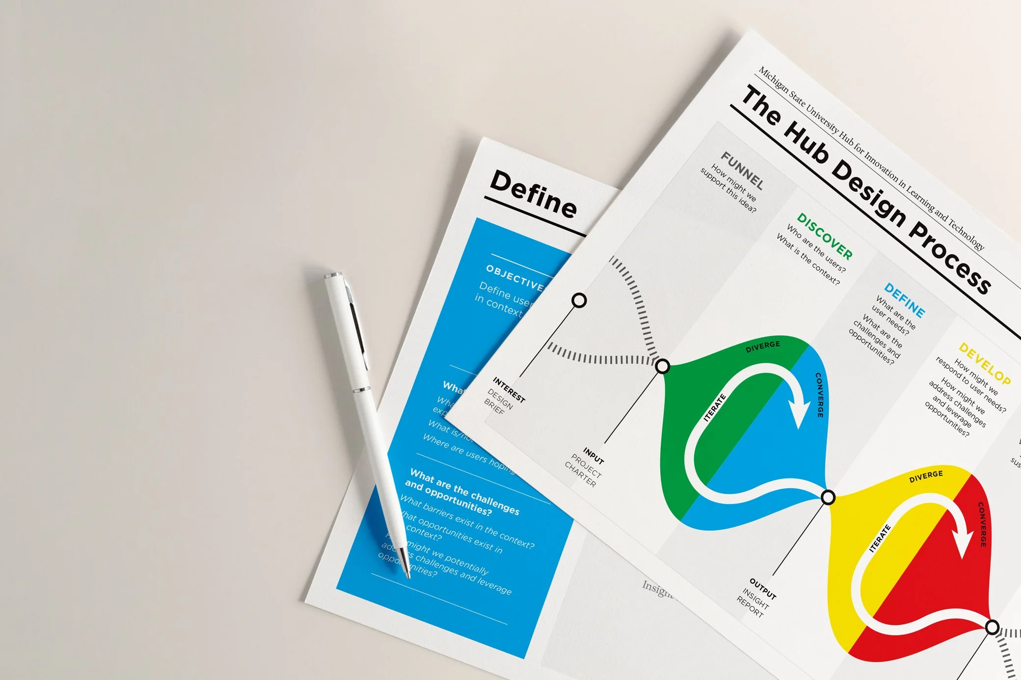 MSU's Hub for Innovation fosters collaboration and innovation among a diverse community of faculty, staff, and students, all while aligning seamlessly with the Hub’s mission of enhancing teaching and technology. Their existing brand identity felt disconnected from the university at large. Our goal in partnering with them was to create a cohesive environment that was visually elevated to feel more professional and innovative.